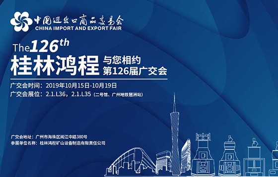 第126屆廣交會開幕在即,磨粉機實力派桂林鴻程與您如期相約! 金秋送爽的時節(jié),美麗羊城將再次迎來一次貿(mào)易盛會,即第126屆中國進出口商品交易會(以下簡稱廣交會...